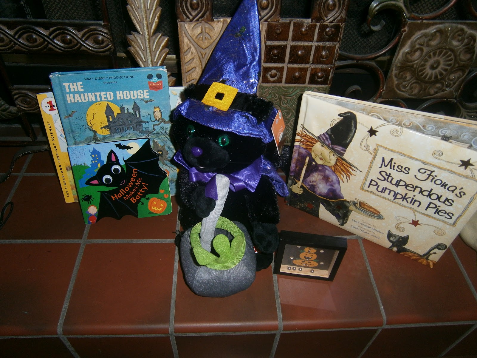 My witch hat and potion station....along with my Ye Old Book of Spells....Double, double toil and trouble; Fire burn, and caldron bubble.